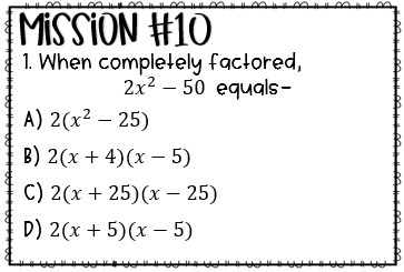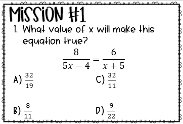 I’m always looking for fun ways to review for the end of year tests that aren’t worksheet on worksheet or super thick packets. This year, in our Algebra 1 PLC we had switched around the curriculum to match our new standards and therefore, needed a whole new review plan for the end of the year. And thus, the “Missions” Review game was born.