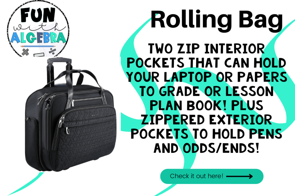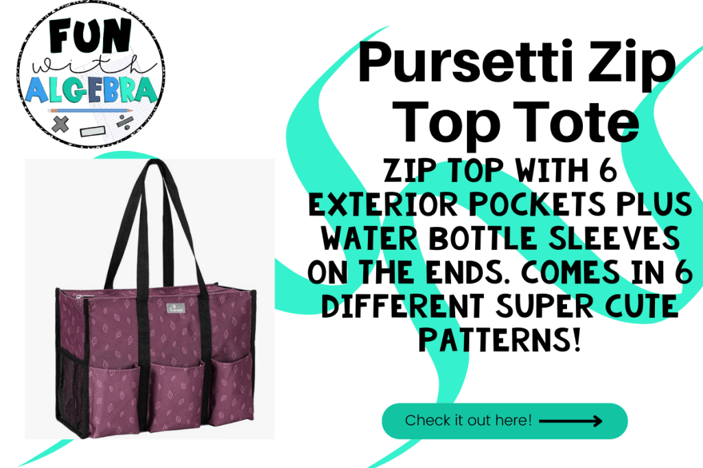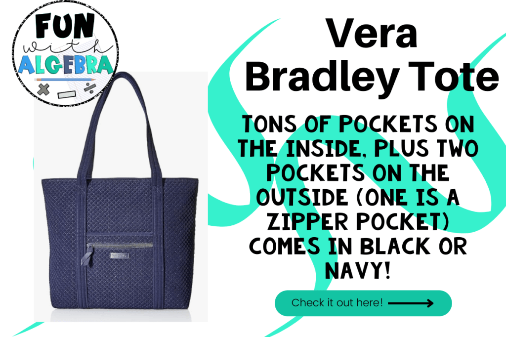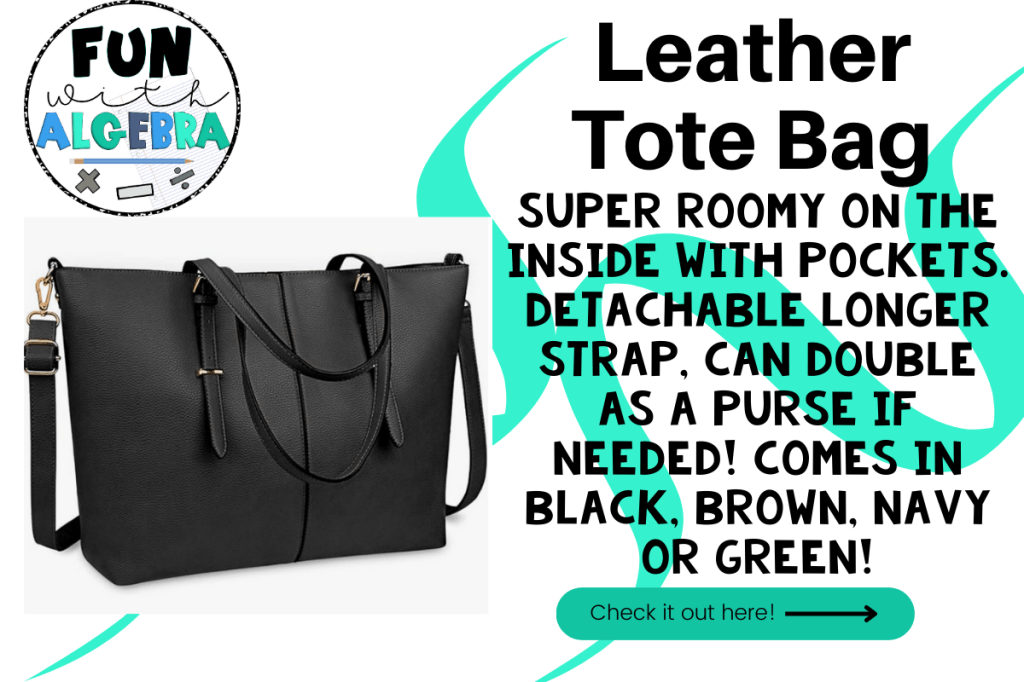 I bought this bag last summer as my new teacher bag and I love it. I can fit my laptop, binder of answer keys and agenda/planner in there with room to spare for my iPad if needed! I also love that it has space on the outside for water bottles and zipper pockets on the outside for my pens/pencils to bring back and forth for when I like to pretend I’m going to do grading at home. #iykyk